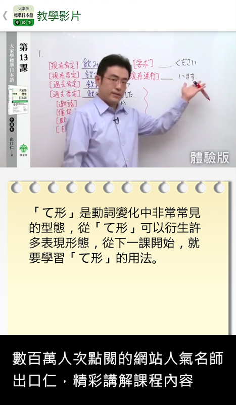 ※ En este producto, también hay un video de enseñanza de japonés estándar [libro intermedio] para todos los que están aprendiendo japonés estándar [libro intermedio] del Sr. Koujin, que se puede comprar directamente en esta aplicación y el precio es de 270 NT$. Si hay una tarjeta de memoria extendida instalada en el dispositivo, se puede configurar para descargar el video de enseñanza a la memoria de almacenamiento secundaria (tarjeta SD).