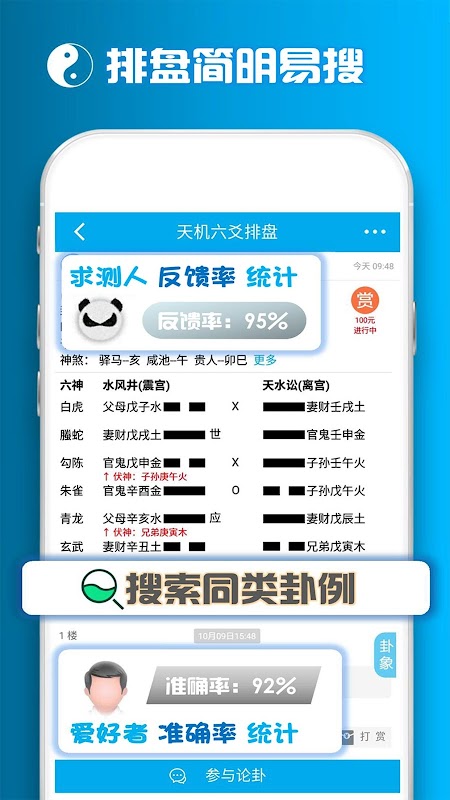 天机六爻排盘是一款面向周易爱好者的海量反馈案例研究平台