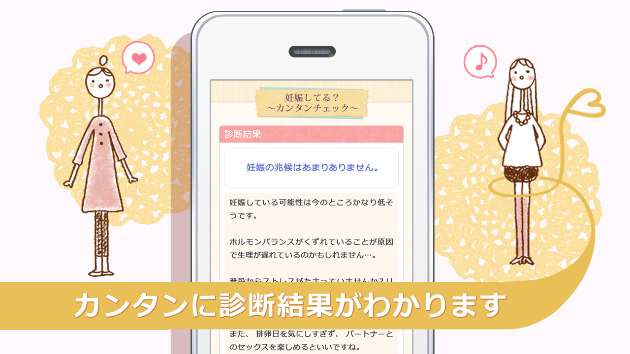 このアプリは医師の診察に代わるものではありません。最終的には自分で判断せず、必ず妊娠検査薬でチェックしたり、医師の診断を受けるようにしてください。