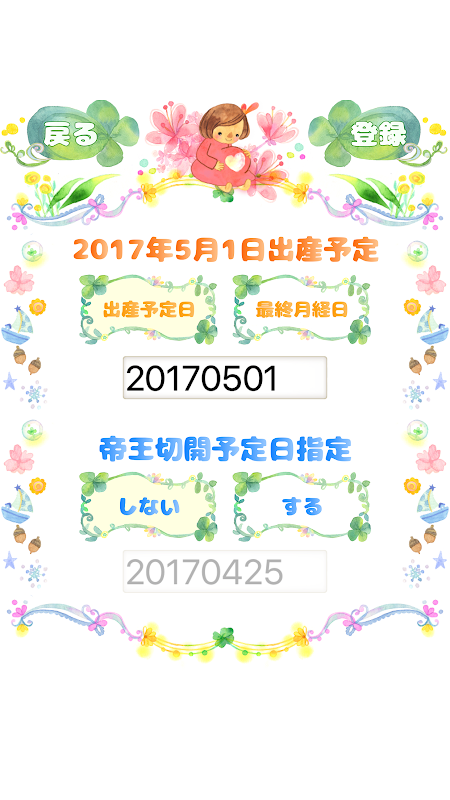 出産予定日・最終月経開始日・帝王切開予定日から、妊娠週数・妊娠月数・出産予定日(または帝王切開予定日)までの日数を自動的に計算します。簡易メモカレンダー付き。