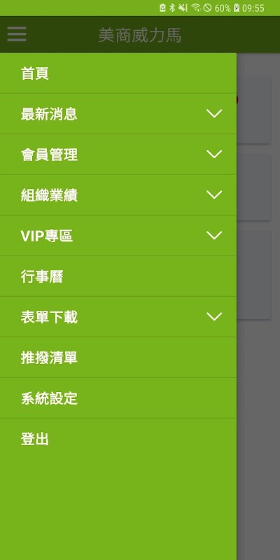 APP包含了最新消息、會員基本資料、訂單紀錄、組織業績、VIP專區、行事曆、表單下載、推播清單等功能,集結於APP上使用,方便又便利。