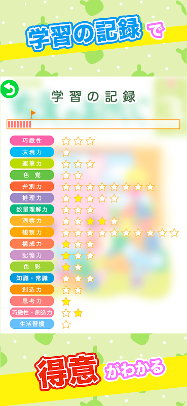 Si puedes practicar bien, recibirás una "Pegatina de Ganbari". Las pegatinas se acumulan en el libro de pegatinas y se pueden consultar en cualquier momento.