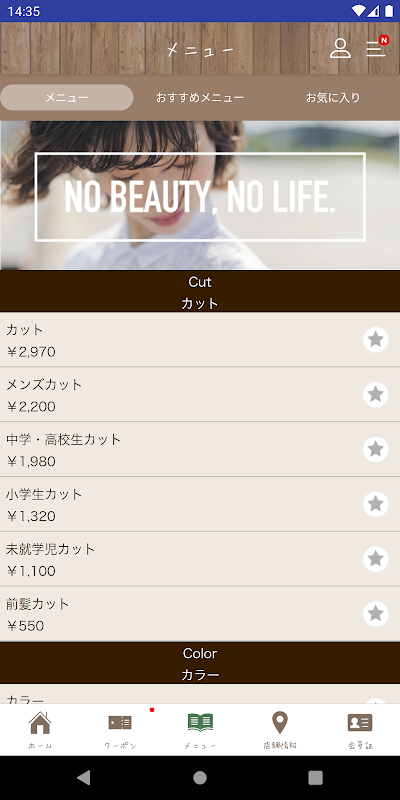 Puede comprobar las recomendaciones de extensiones de pestañas Uñas estilo de pelo, diseño del hueso de la belleza, etc. de. Menú de salón y los precios sean más preocupado se puede comprobar fácilmente desde la aplicación.