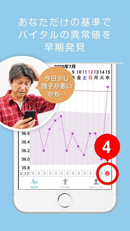 Gestiona información vital diaria (temperatura corporal, presión arterial, pulso, SpO2, frecuencia respiratoria, nivel de glucosa en sangre, peso corporal) y detecta y notifica valores vitales anormales.