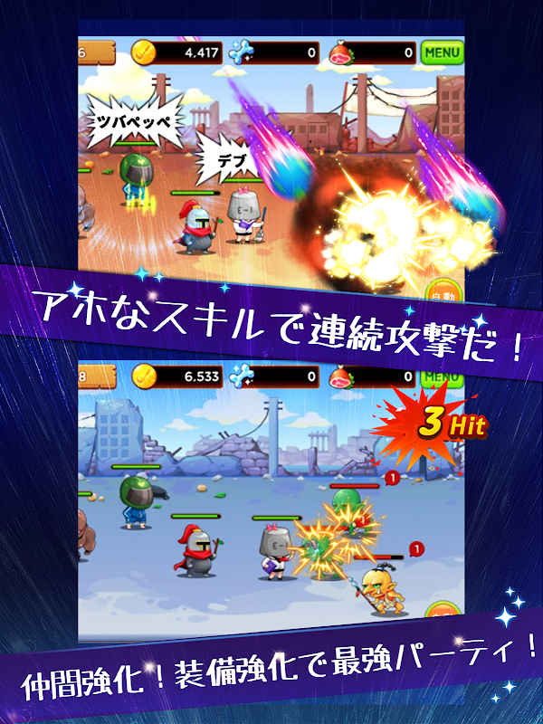 幼児体型おっさんが仲間を引き連れて暴れたおすオートパズルRPG!