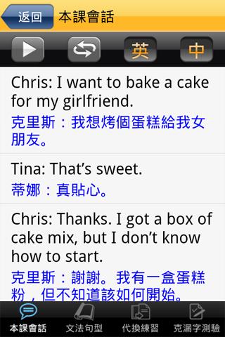 由會話中選錄實用句型,由專業老師解說文法與句型用法,搭配互動式練習與測驗(代換練習與克漏字測驗),讓您精熟重點文法與句型。