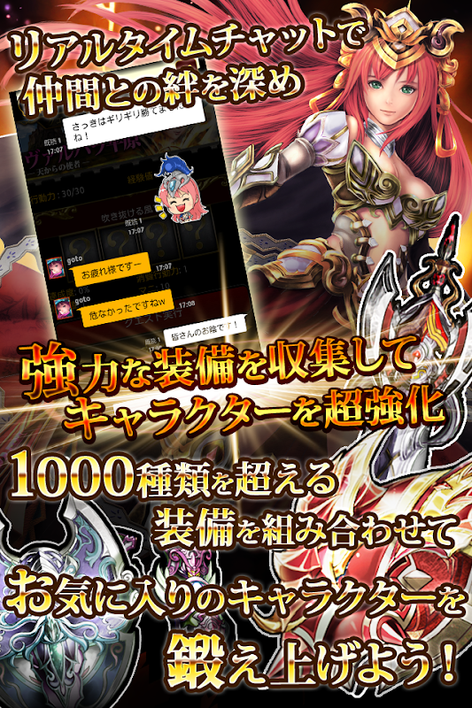 新たに騎士団を結成・参加することで強大なモンスターに戦いを挑もう。ギルド同士の大戦争も開催!オンラインチャットで仲間と繋がり協力バトルで相手を攻略!