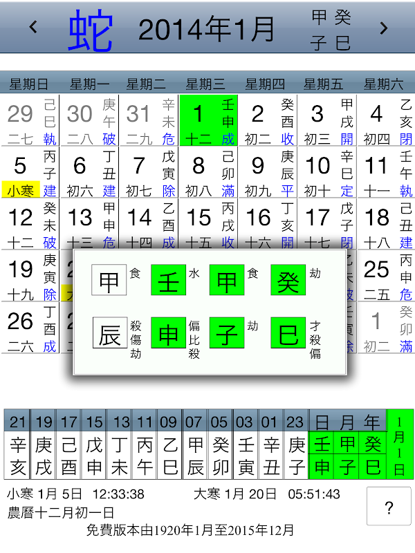 Calendario perpetuo chino. Proporcionado del 1 de enero de 1910 al 28 de febrero de 2020. Calendario campesino chino, También incluye el calendario chino.