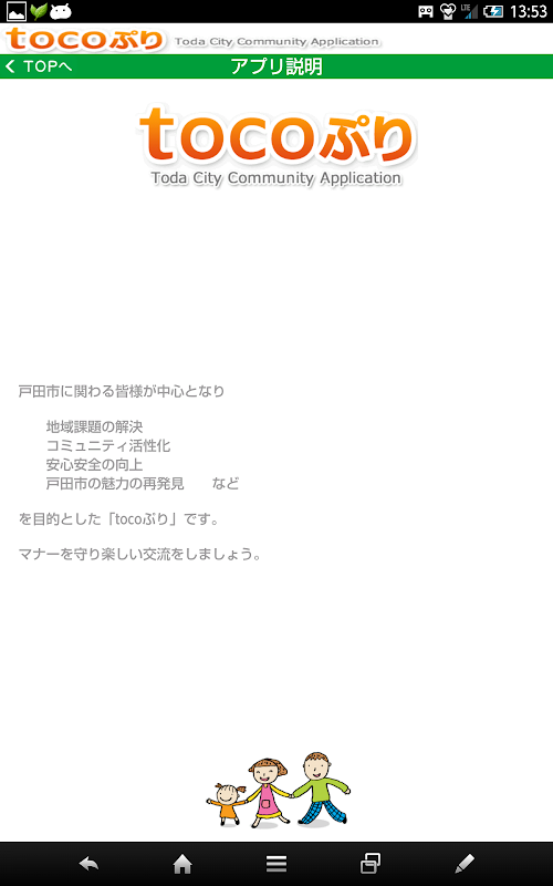 みなさんも、「tocoぷり」を使って戸田市をもっと身近なまちにしていきましょう!