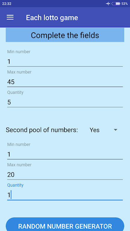 La aplicación está hecha para ayudarlo a elegir números al azar, pero no lo alienta a jugar a la lotería ni a ningún tipo de apuesta.