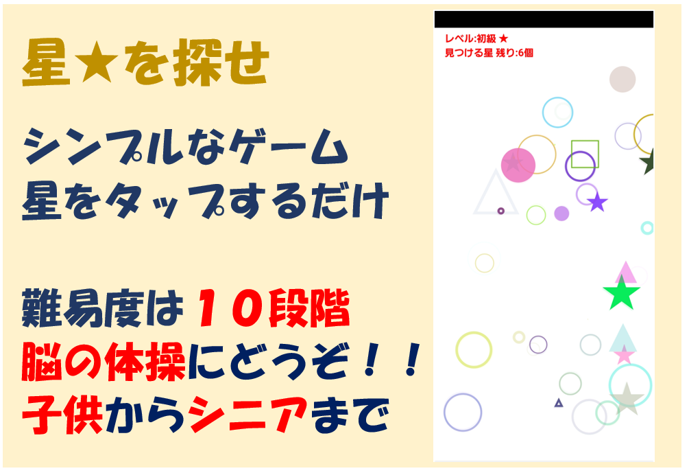 Es un juego simple en el que solo buscas estrellas y las tocas todas. Juegos para niños, entrenamiento mental para personas mayores.