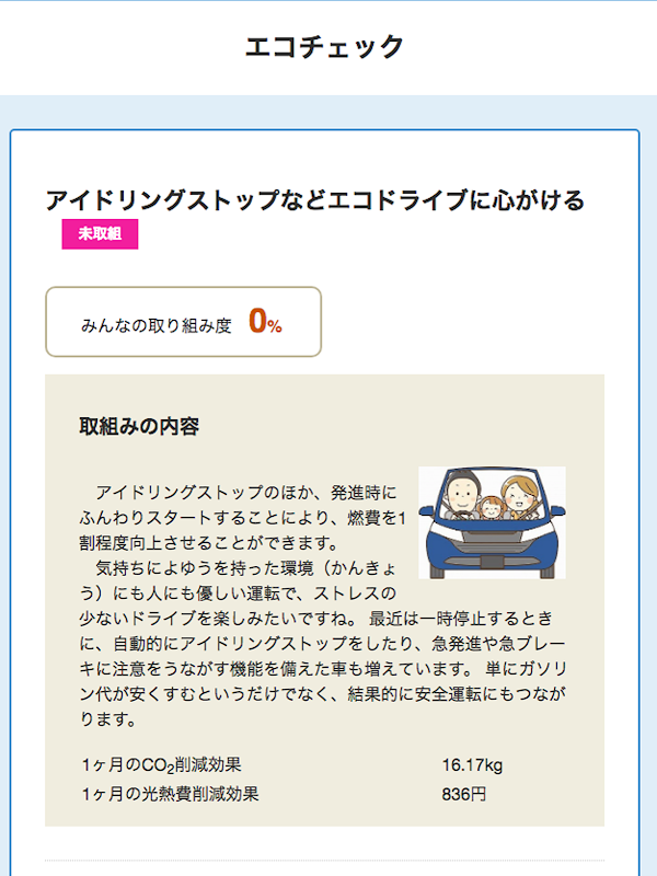また単に記録するだけでなく、あなたの家庭にあったエコチェックを通じて、より光熱費を減らすこともできます。取り組みに応じて、ポイントがたまるようになっていたり、順位が表示されるようになっていたりしますので、ぜひチャレンジしてみてください。