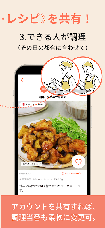 La característica más importante de las Recetas Oyako es que están diseñadas para que padres e hijos puedan comerlas juntos, sin la molestia de preparar y cocinar comidas infantiles individualmente. (Supervisado por el dietista registrado exclusivo de Me-New, etc.)