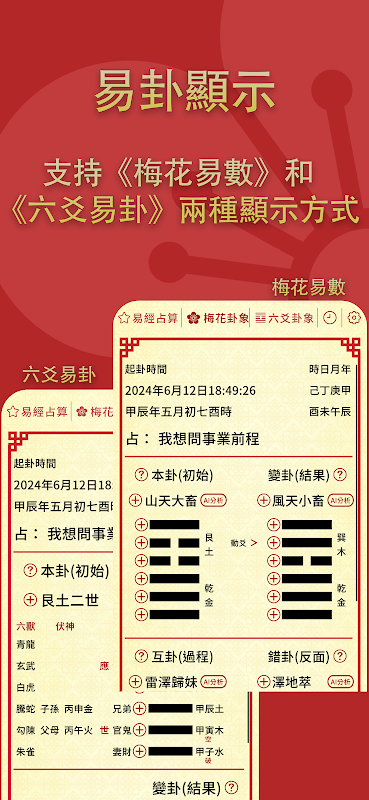 ・Adivinación de flor de ciruelo + Adivinación de Liu Yao: admite dos métodos de adivinación tradicionales, teniendo en cuenta las necesidades de principiantes y avanzados.