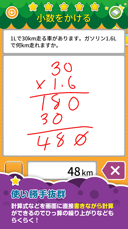 Es una aplicación de apoyo al estudio de matemáticas de la escuela primaria de quinto grado hecha con referencia al curso del Ministerio de Educación, Cultura, Deportes, Ciencia y Tecnología. Puede practicar el ensamblaje de fórmulas a partir de oraciones, leer y escribir tablas y gráficos, y hacer divisiones largas, así como problemas de cálculo.