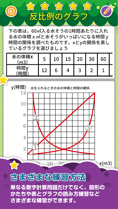 Es una aplicación de apoyo al estudio de matemáticas de la escuela primaria de sexto grado hecha con referencia al curso del Ministerio de Educación, Cultura, Deportes, Ciencia y Tecnología. Puede practicar el ensamblaje de fórmulas a partir de oraciones, leer y escribir tablas y gráficos, y hacer divisiones largas, así como problemas de cálculo.