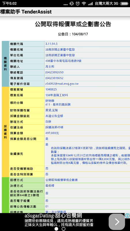 可以讓你在手機上快速的瀏覽標案的相關資訊,讓你掌握標案最新訊息