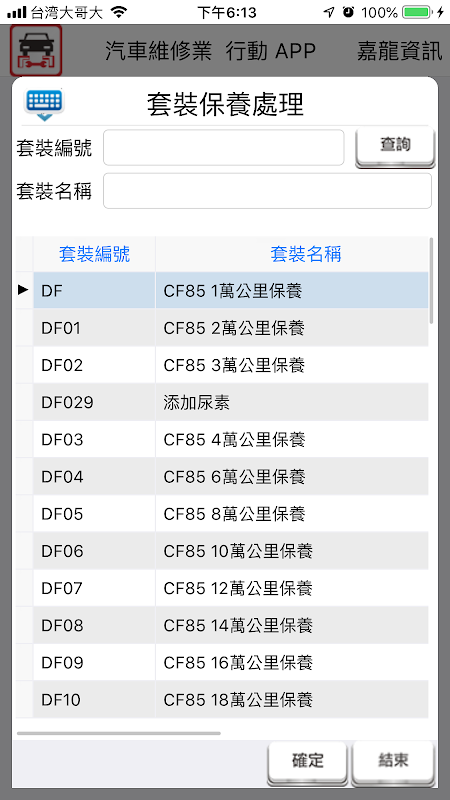 Consulta de coches Apertura de orden de trabajo Control de mantenimiento Inspección final de orden de trabajo Protección de seguridad