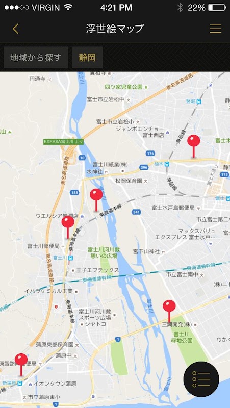 「浮世絵で歩く日本の名所」は、描かれているおおよその場所が特定できる浮世絵作品を現在の地図上にプロットするスマートフォン向けのアプリです。