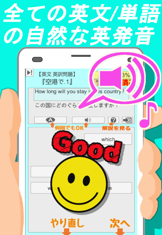 海外旅行でよく使う厳選した英会話フレーズと英単語を収録!【わかりやすい解説】【自然な英発音】【英訳作成問題】【リスニング問題】を全て無料で学習出来ます!