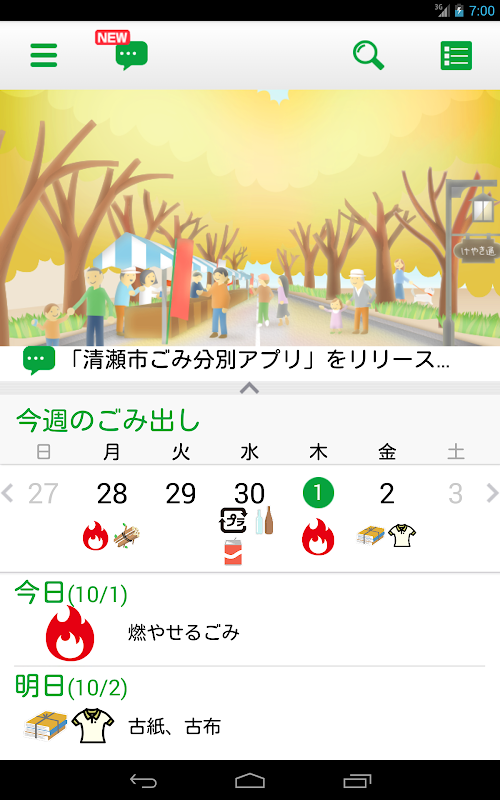 清瀬市ではごみの収集日やごみの出し方、出す時の注意点、ごみ分別辞典、よくある質問など、ごみに関する様々な情報を身近なスマートフォンを利用して簡単に確認できるアプリケーションをリリースしました。