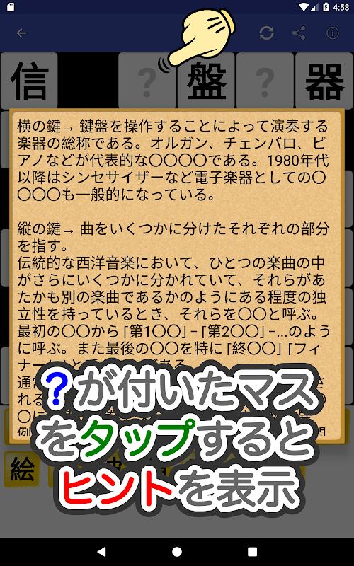 自動で問題を作成! 無限に遊べる漢字埋めクロスワードパズルです。 今までに無かったパズルで、 頭を柔らかくして脳トレにチャレンジ!