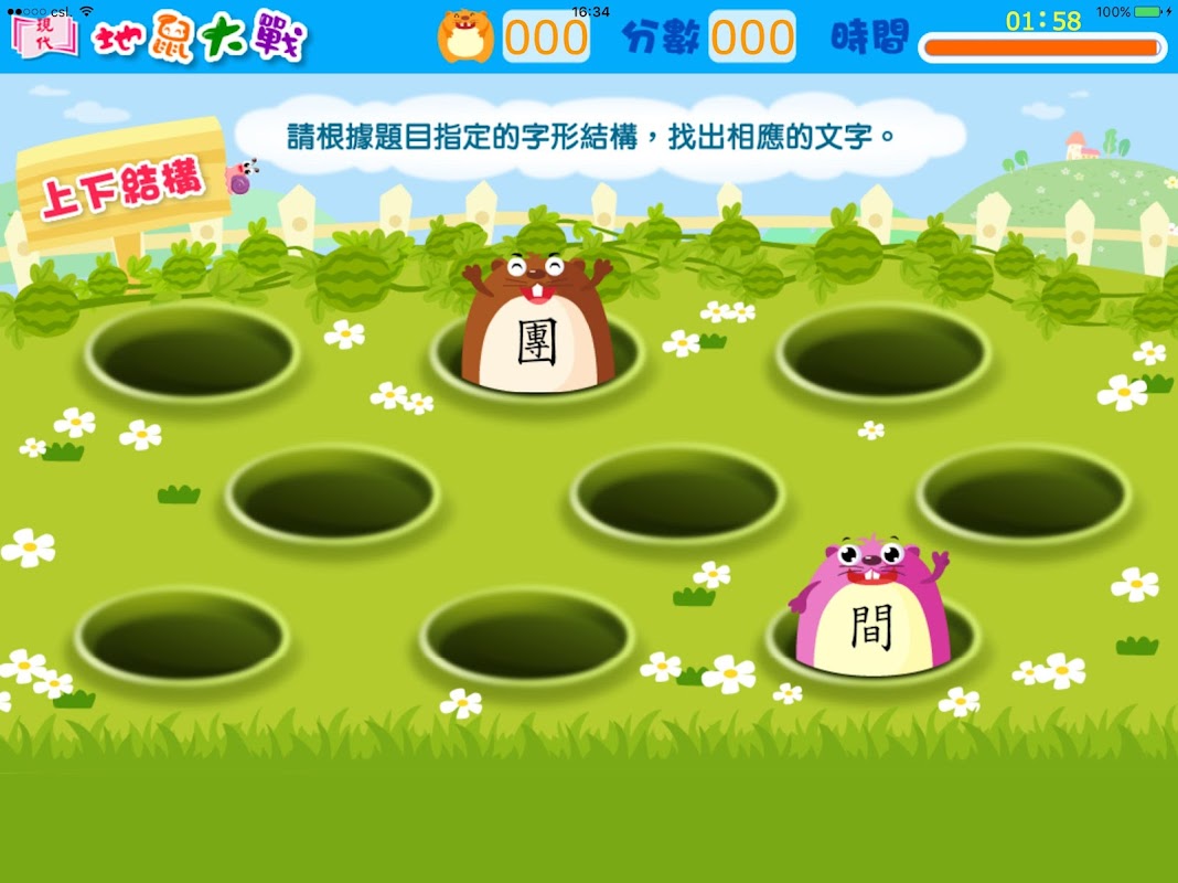 「地鼠大戰」是一個「寓學習於遊戲」的字形結構應用程式(App),以有趣的動畫深入淺出的介紹字形結構,並以遊戲形式來鞏固學生的字形結構知識。
