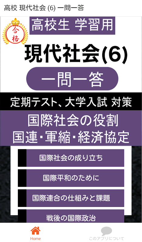 現代社会を学ぶ高校生が、定期テストや大学入試に向けて、ポイントを押さえてなるべく楽に勉強することを目的として作成したアプリです。