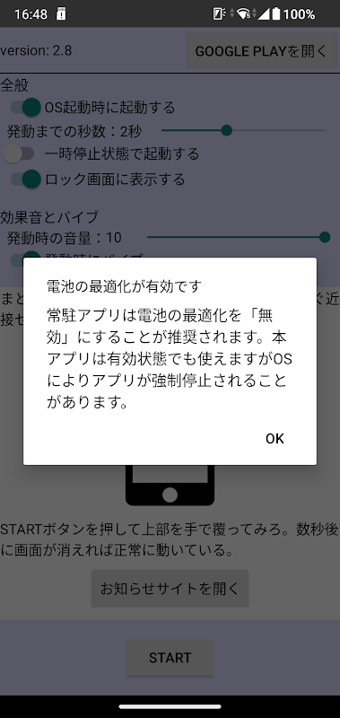 * Android 8.0以降でサービス起動時(常駐開始時)にバイブしないようにした。