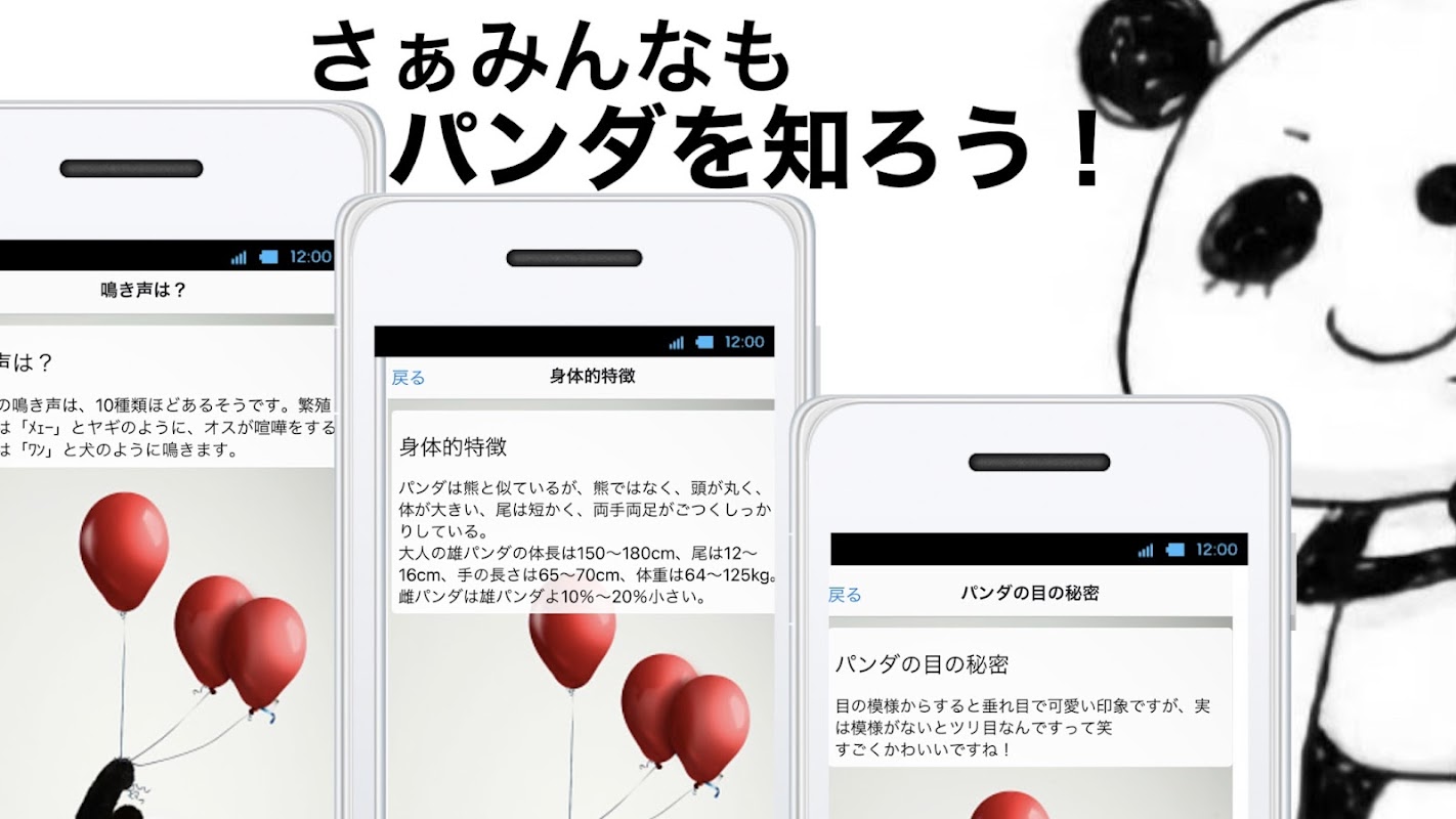 こちらのアプリはパンダ好きによるパンダに関しての雑学をまとめた読み物アプリとなっております。