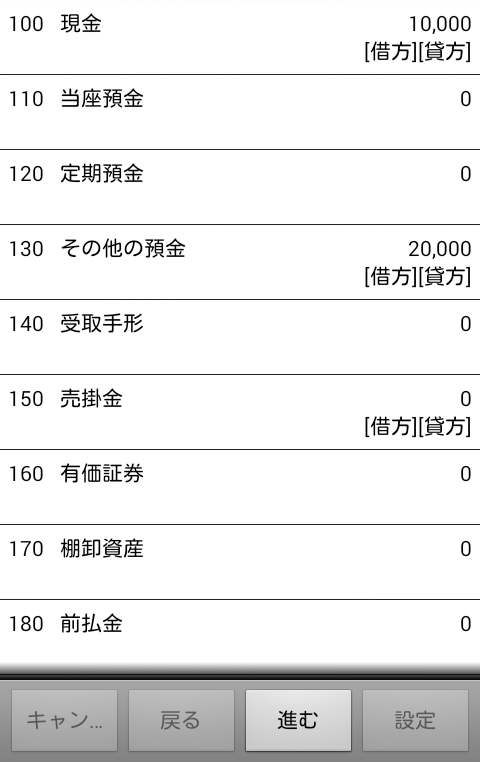 Puede cambiar los valores iniciales de las cuentas de débito y crédito en la "Pantalla de lista de diarios" - botón "Configuración" - "Establecer valores de cuenta predeterminados para nuevas entradas de diario".