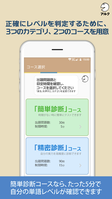 - si el curso de diagnóstico simple, se puede comprobar su nivel de palabra inmediatamente en sólo 5 minutos.