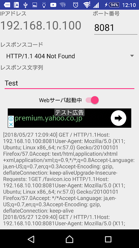 ポート番号を設定するだけで、あなたのスマホに簡易的なWebサーバを立ち上げることができます。