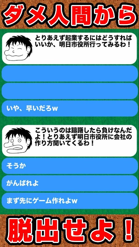 ダメ人間の戯言から3択の返事を選んで、会話を終わらせよう!