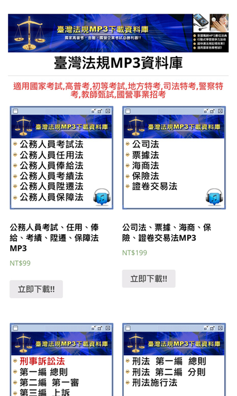★臺灣法規MP3資料庫-MP3下載隨身背法條,徹底行動式學習!!
