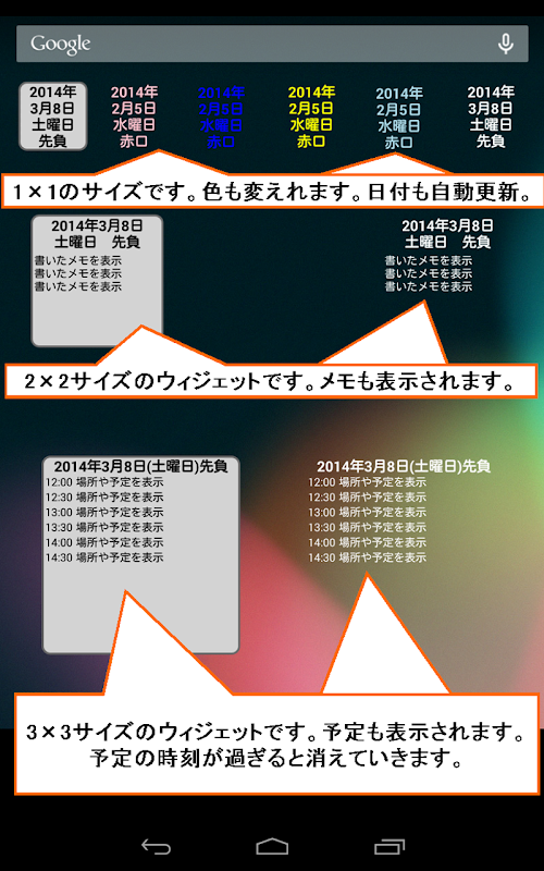 El tamaño del widget es de 1 × 1 tamaño sólo la fecha.