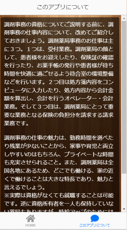 Es una aplicación para estudiar para el examen de calificación del trabajo de oficina de farmacia dispensadora.