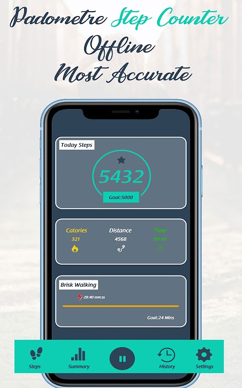 Simplemente toque el botón de inicio y comenzará a contar sus pasos. Ya sea que su teléfono esté en su mano, bolso, bolsillo o brazalete, puede grabar automáticamente sus pasos incluso si su pantalla está bloqueada.