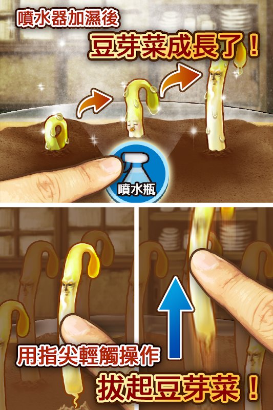 ・簡單的指尖輕觸操作即可採收豆芽菜!