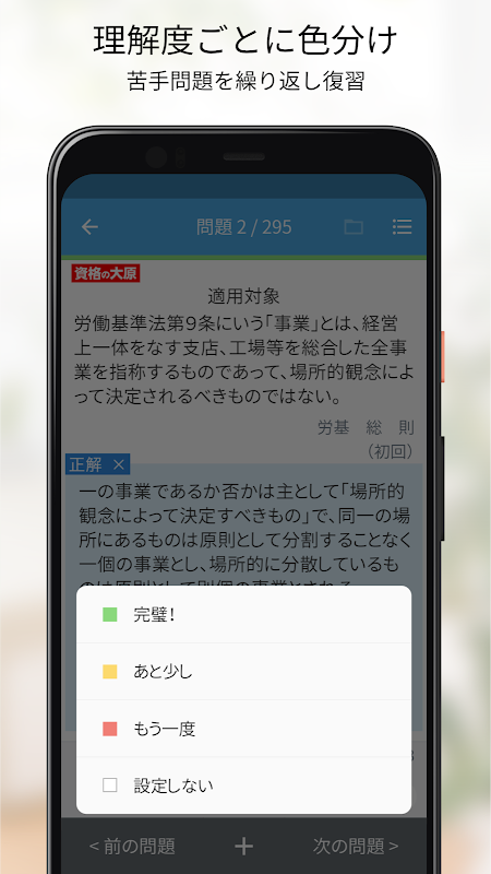 ・Con la función de nivel de comprensión, puede agrupar preguntas por color. Reduce fácilmente los problemas en los que eres débil