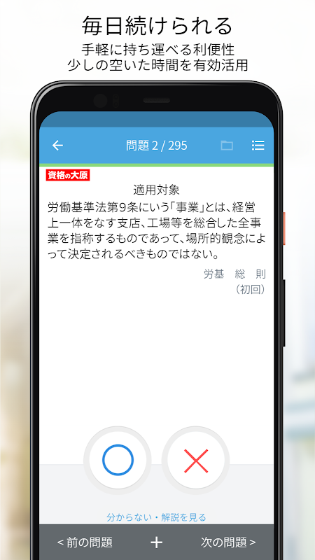 Esta aplicación no está incluida en los materiales didácticos del curso de Calificación de Consultor Laboral y Seguro Social de Ohara. Este servicio está disponible por una tarifa separada. Además, el contenido de las preguntas es el mismo que el del libro de preguntas de formación de opción múltiple (libro) distribuido a los estudiantes del curso de Ohara.