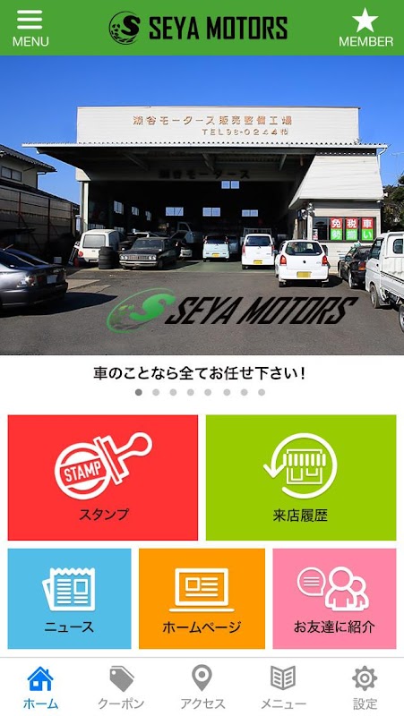 このアプリでは、「瀬谷モータース」の色々な情報やアプリユーザー限定のお得なサービスが手に入ります!