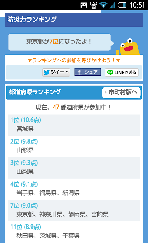 ・「全国防災力ランキング」を新たに掲載。各都道府県のランキングをマップで見ることができます。