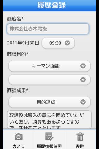 いつでも営業活動を可能にするアプリケーションを提供します。予定情報を取り込んでおけば、営業活動の登録、カメラを利用した現場情報の収集がスムースに行えます。