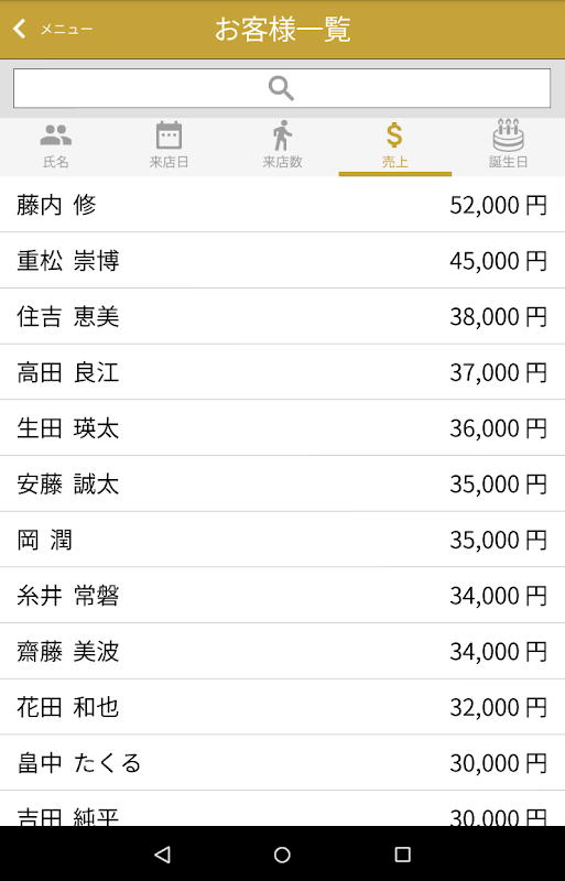 初回来店日、前回来店日、名前、誕生日、電話番号、メールアドレス、来店動機、職業、その他メモを管理