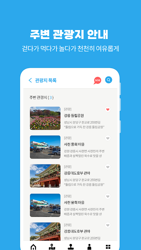 * Gangneung Baugil recopila datos de ubicación incluso cuando la aplicación no está en uso para mostrar una ruta de viaje en un mapa según la ubicación actual del usuario.