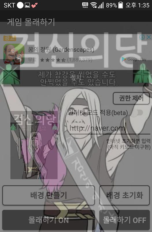 - '다른 앱 위에 그리기' 권한 허용해야함