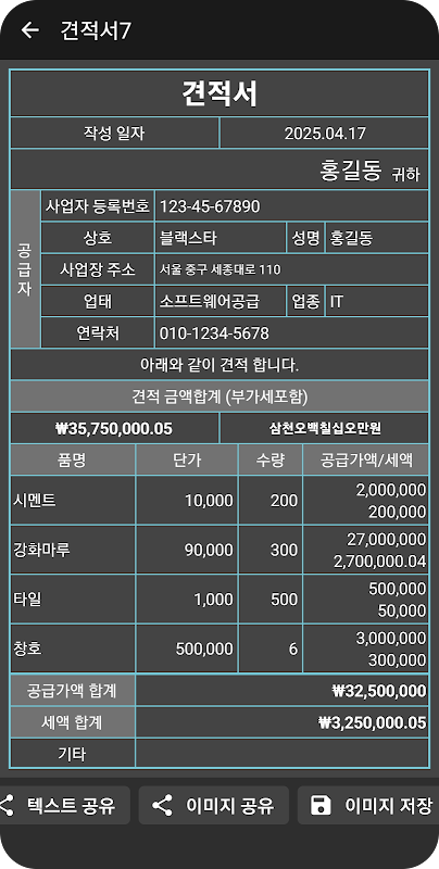 Acerca del 견적서 생성기 - 견적서 만들기