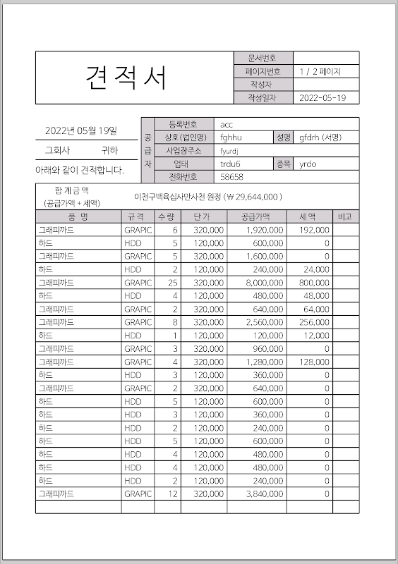 견적서 - PDF파일 저장, 카톡/e-mail 전송 5.2