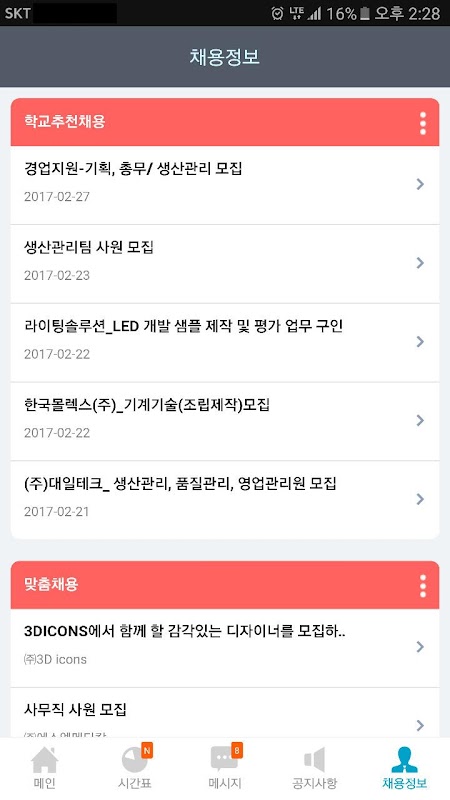 * 학생 및 교직원이 아닐 경우 공지사항과 학교정보만 이용할 수 있습니다.